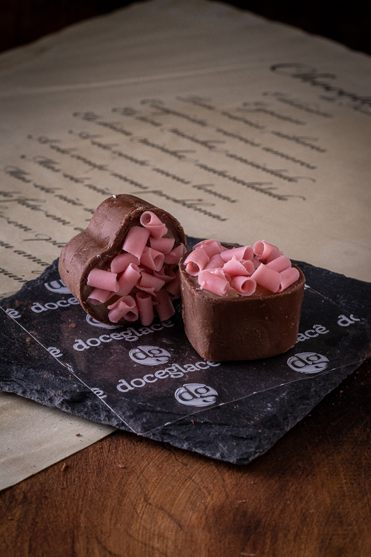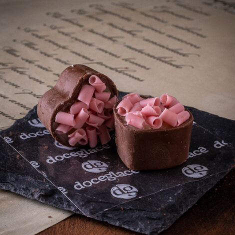 Coração de chocolate belga , recheio a escolher , cobertura de raspas de chocolate belga