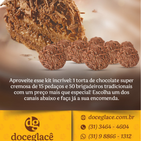Kit com 1 torta de chocolate super cremosa e 50 brigadeiros tradicionais.