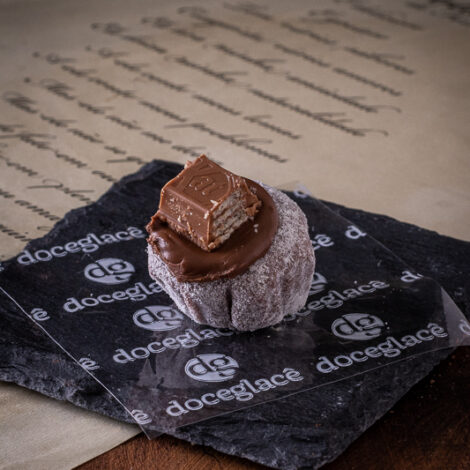 Massa de brigadeiro de kitkat, raspas de chocolate branco , ganache belga e kitkat
