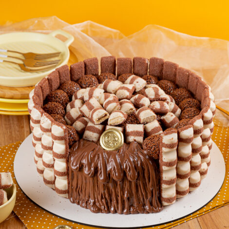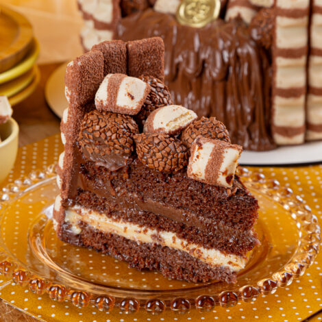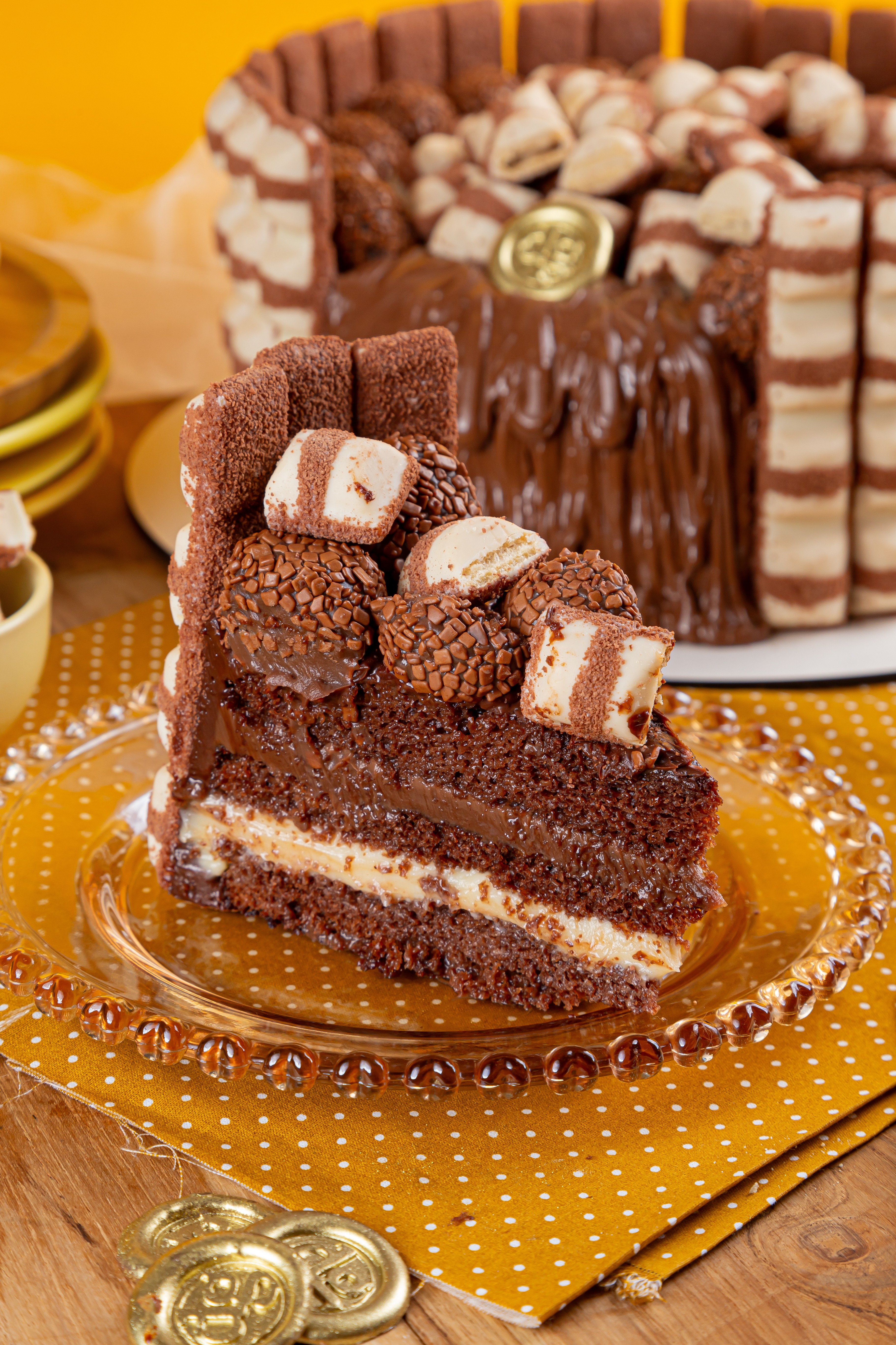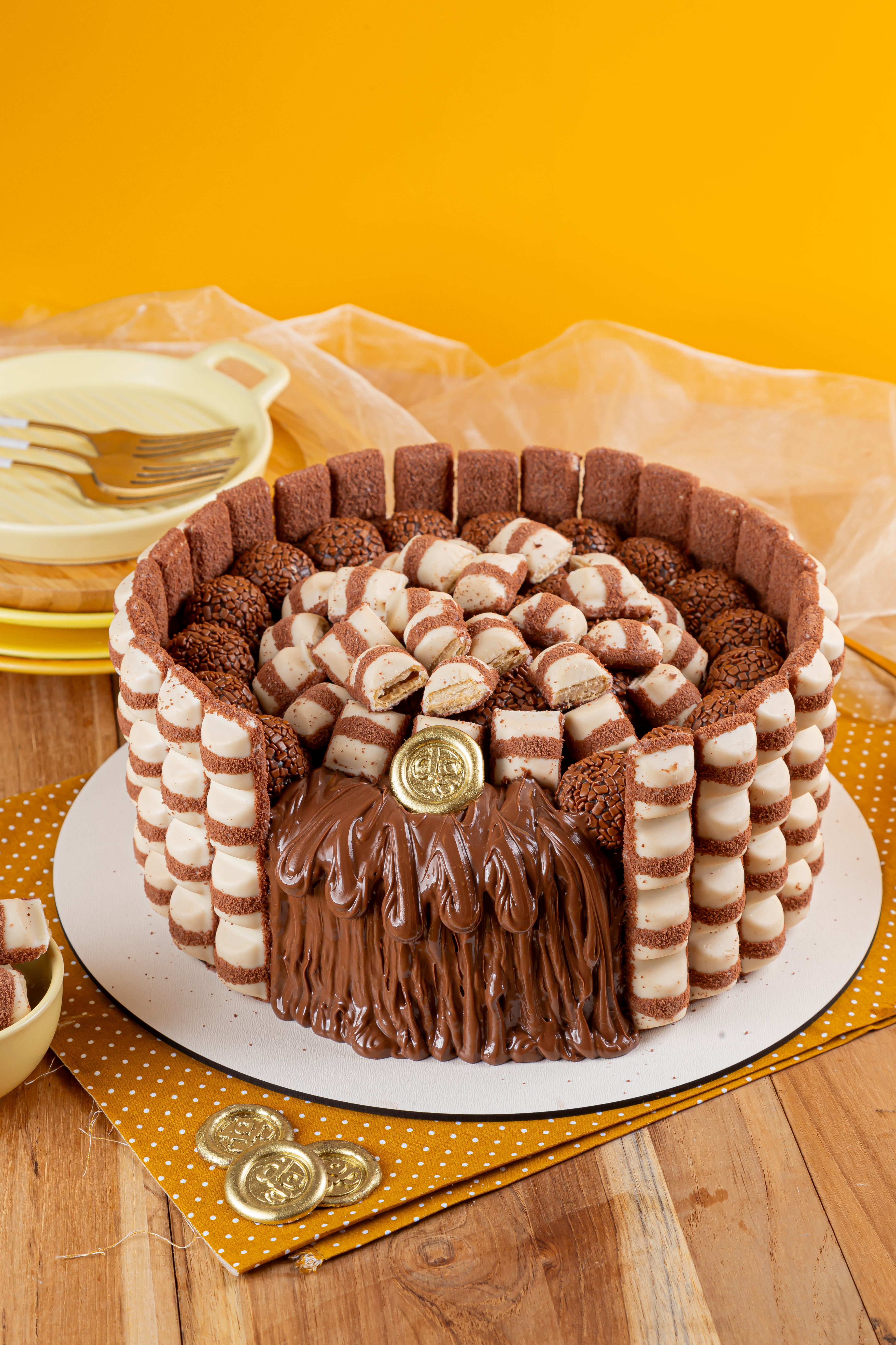 Massa de chocolate 100 % cacau, creme trufado de brigadeiro belga, creme moça, brigadeiro belga ,kinder bueno e muita nutella