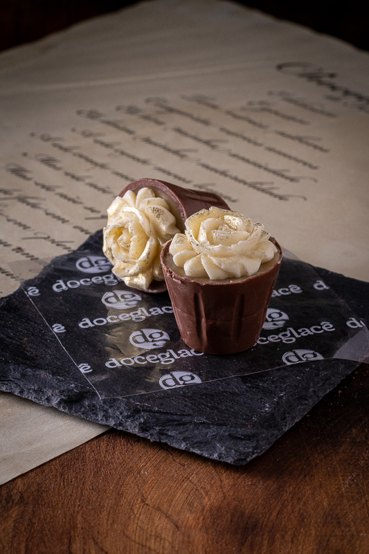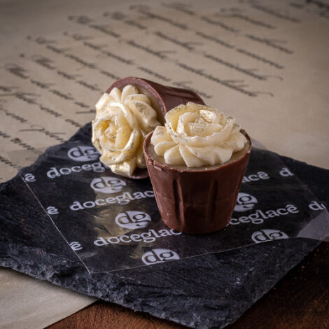 Vasinho de chocolate, recheio de leite ninho e flor de ninho